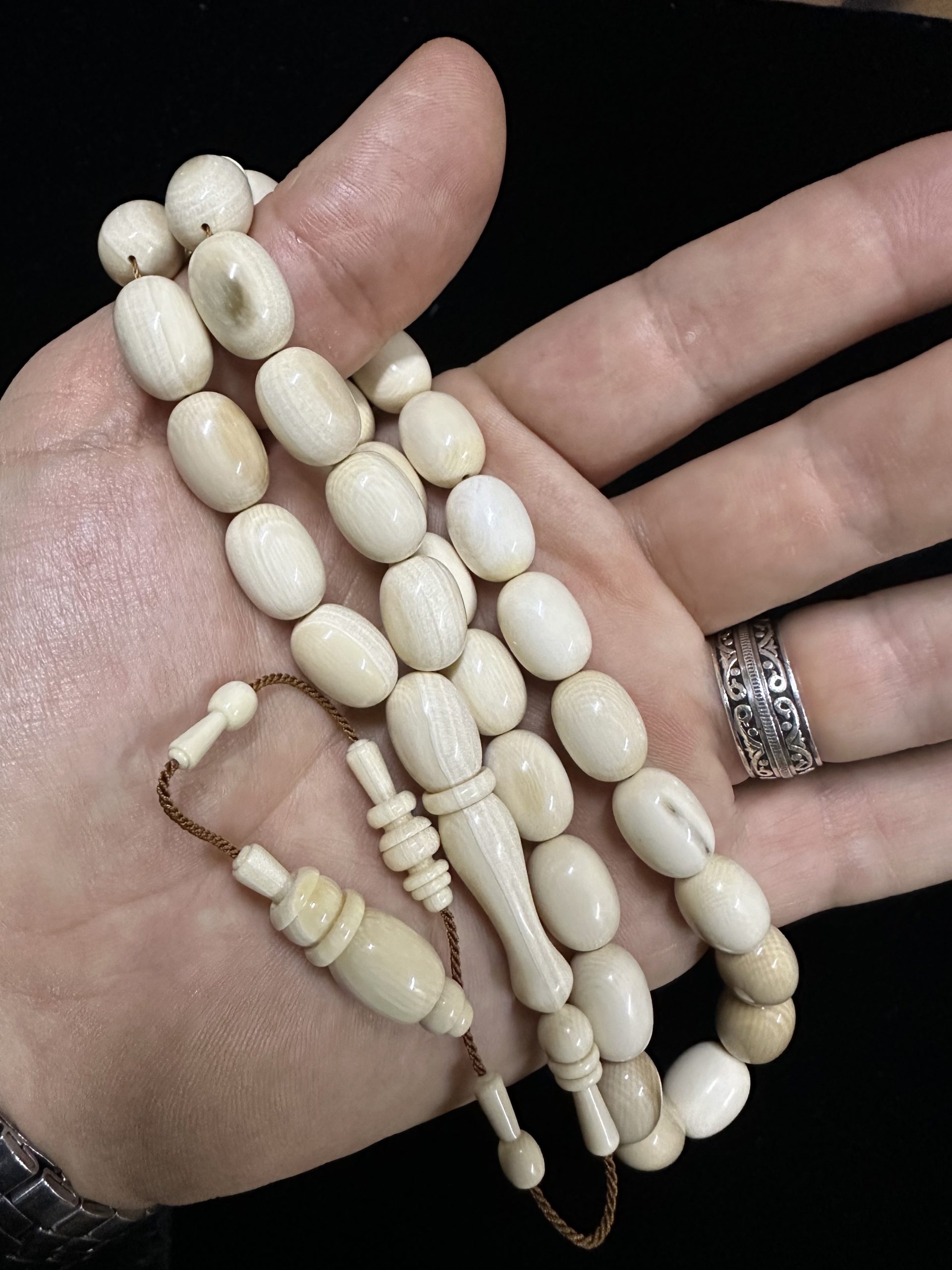 Koleksiyonluk Özel İşçilikli Doğal Mamut Dişi Tesbih